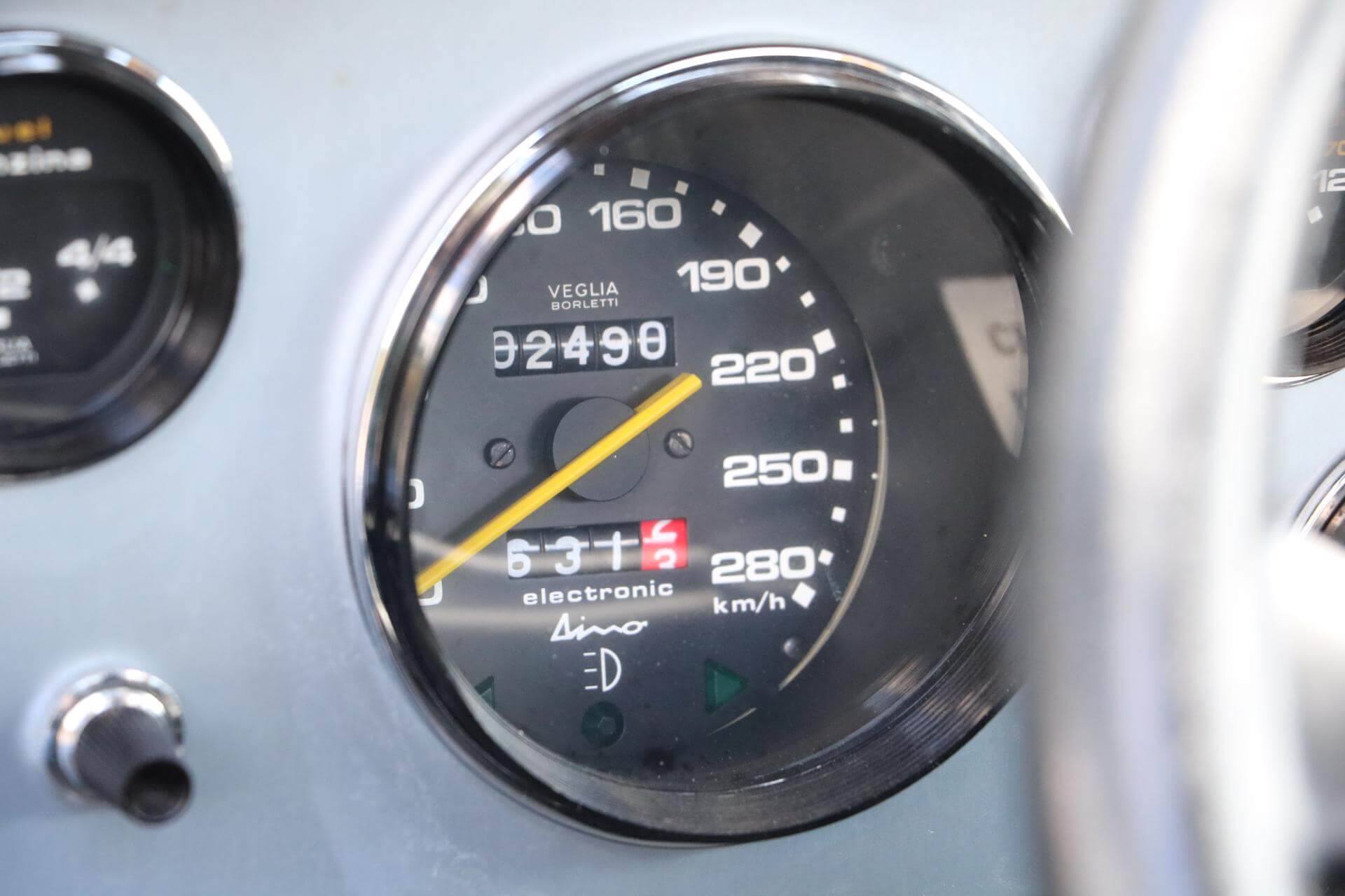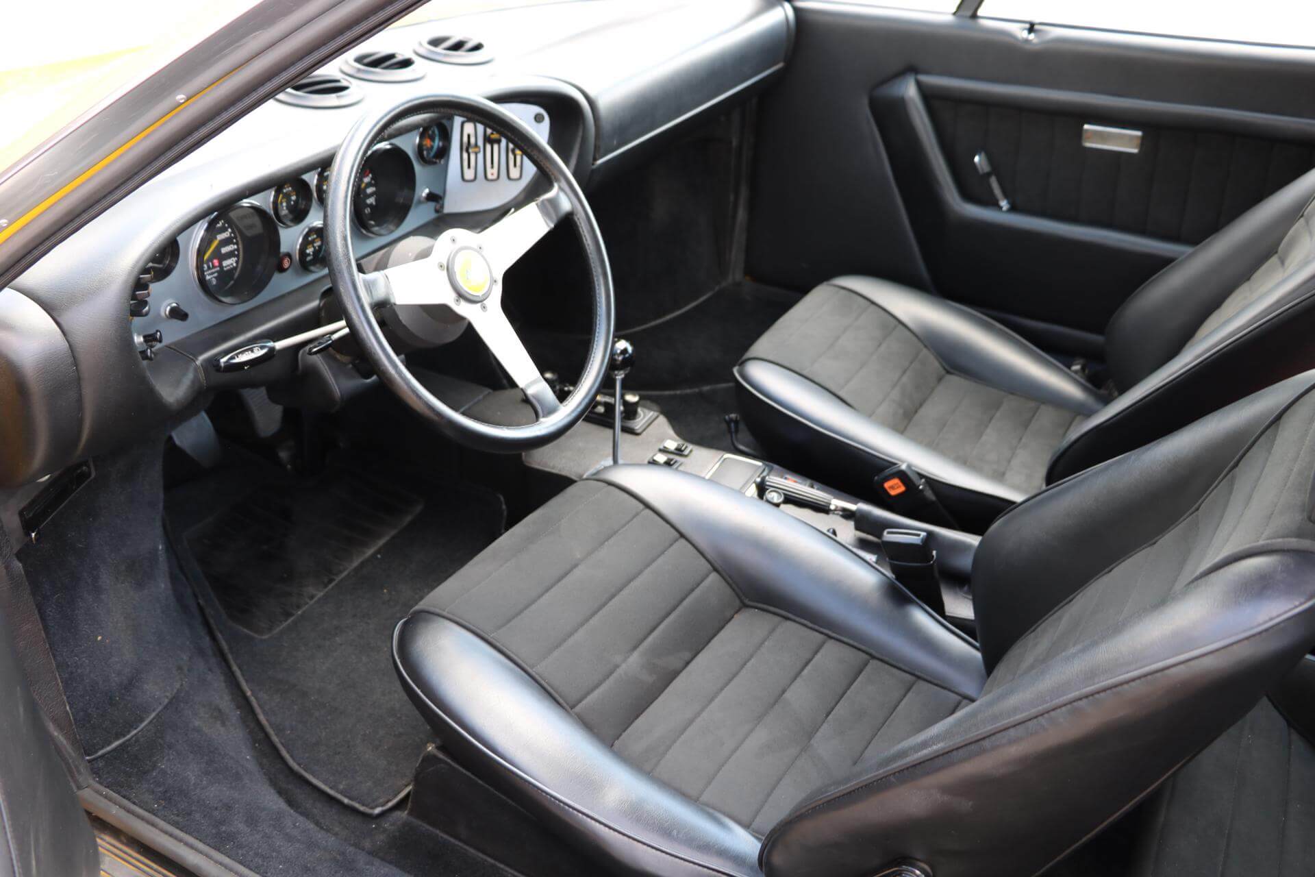 This Ferrari Dino 308 GT4 was originally supplied through famous Garage Francorchamps in Bruxelles, Belgium. The car was delivered in May 1974. The car first registration was on August 27 of that same year. A very early car and therefore the car wears the correct Dino badges.